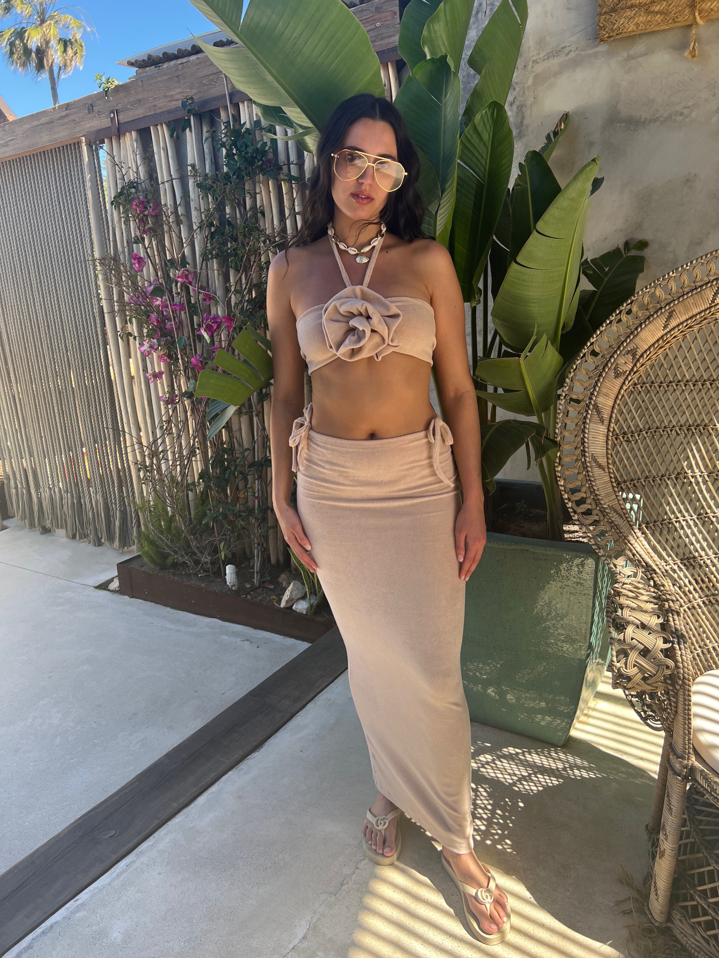 ROSALIE Bikini Set : BandeauBikini Top with Flower Detail and String Tie Bottoms (Medium Coverage)