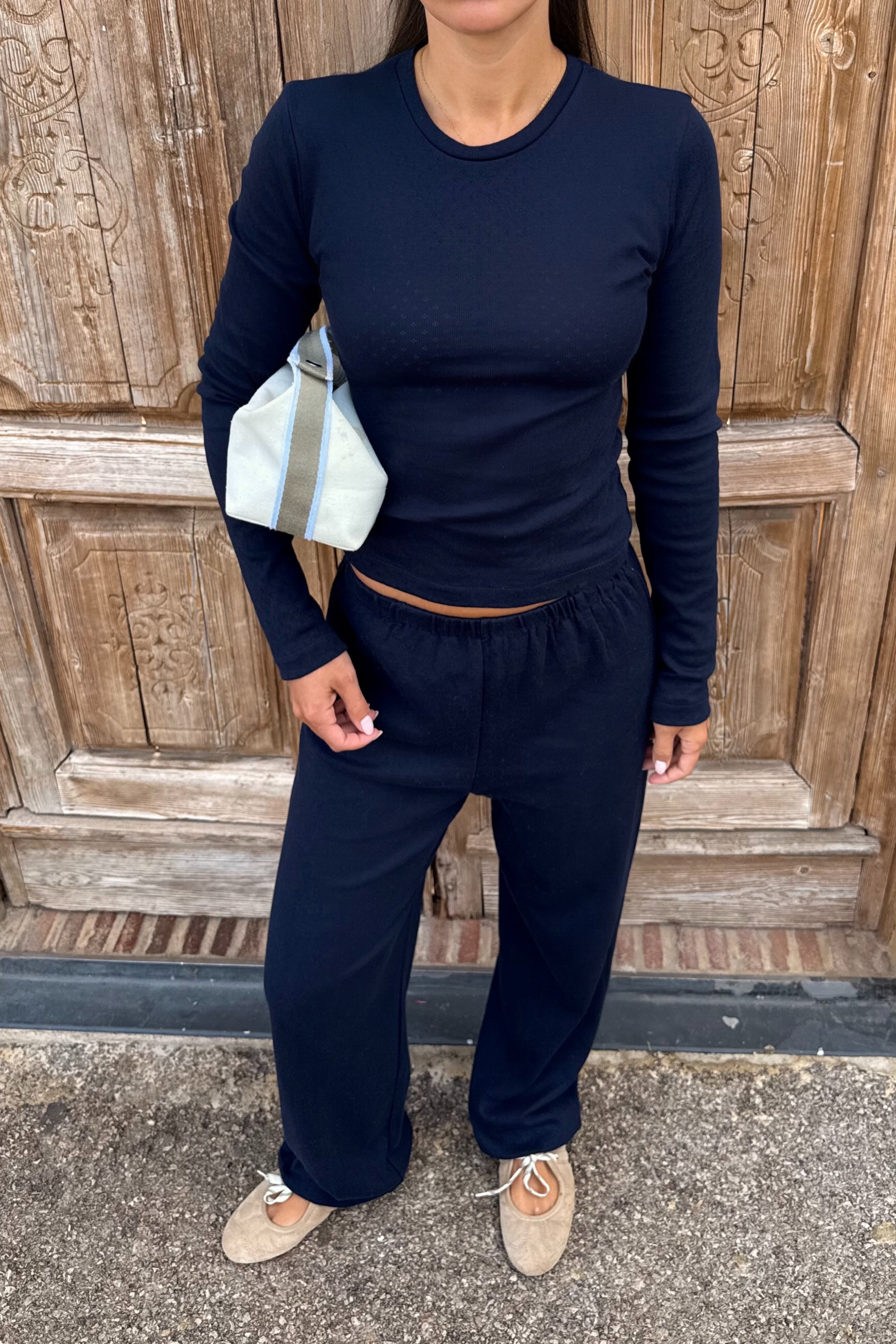 Travel Set Long Sleeve in Navy Pointelle