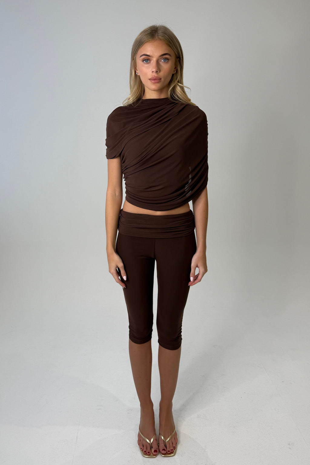 A deeper palette. A stronger silhouette. Powermesh, draped knits, quiet confidence. The Next Chapter — refined, powerful, and unapologetically her.