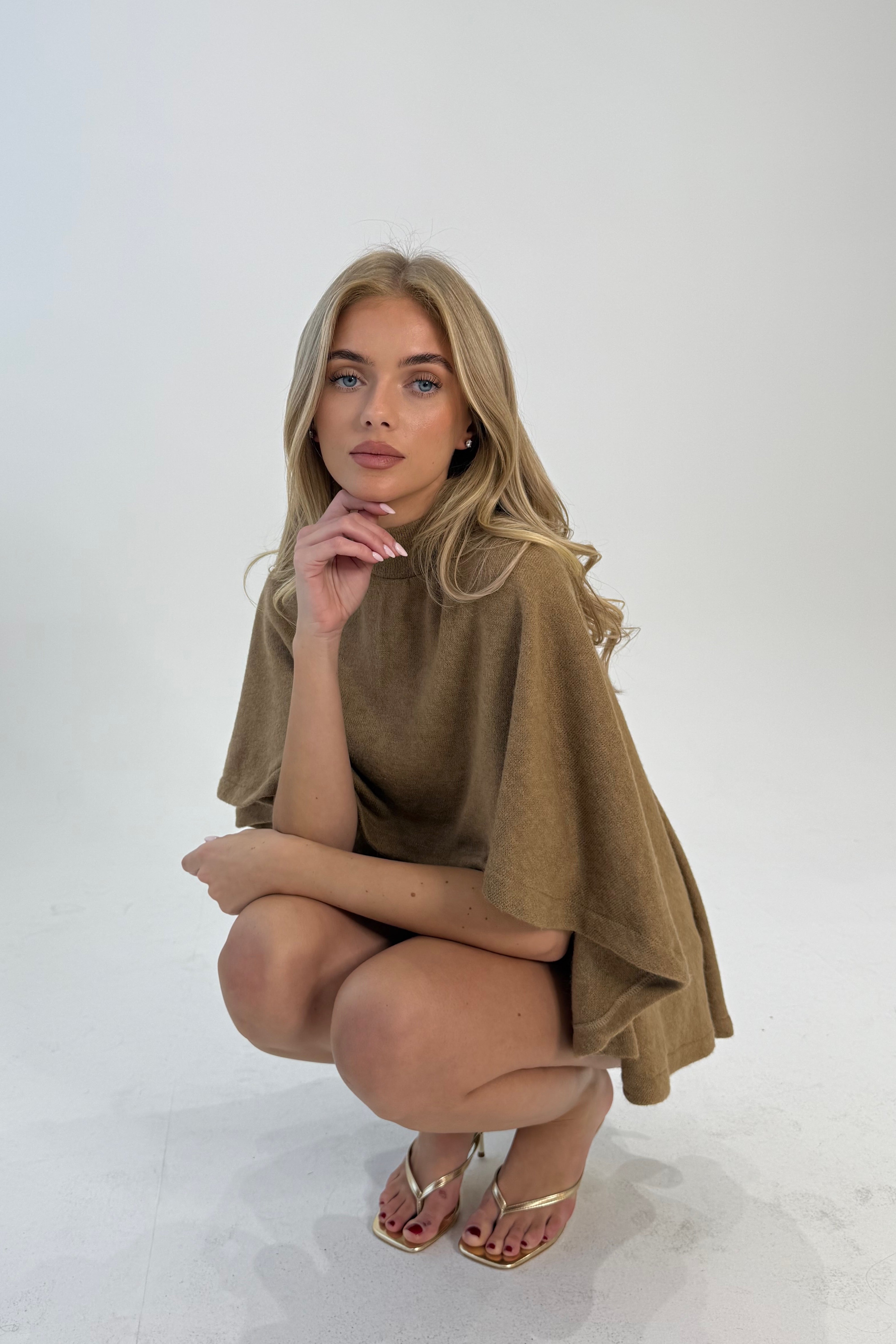 A sculptural knit cape designed for modern layering. Soft, structured, and endlessly versatile, it drapes gracefully with an open tie-back that allows for shape and movement.