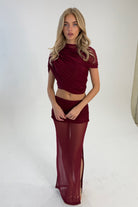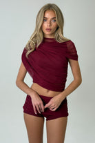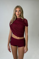 Powermesh Drape Ruched Top in Burgundy